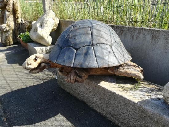 Tortue bois flotté et mortier à mil africain resculpté, longueur 1m environ