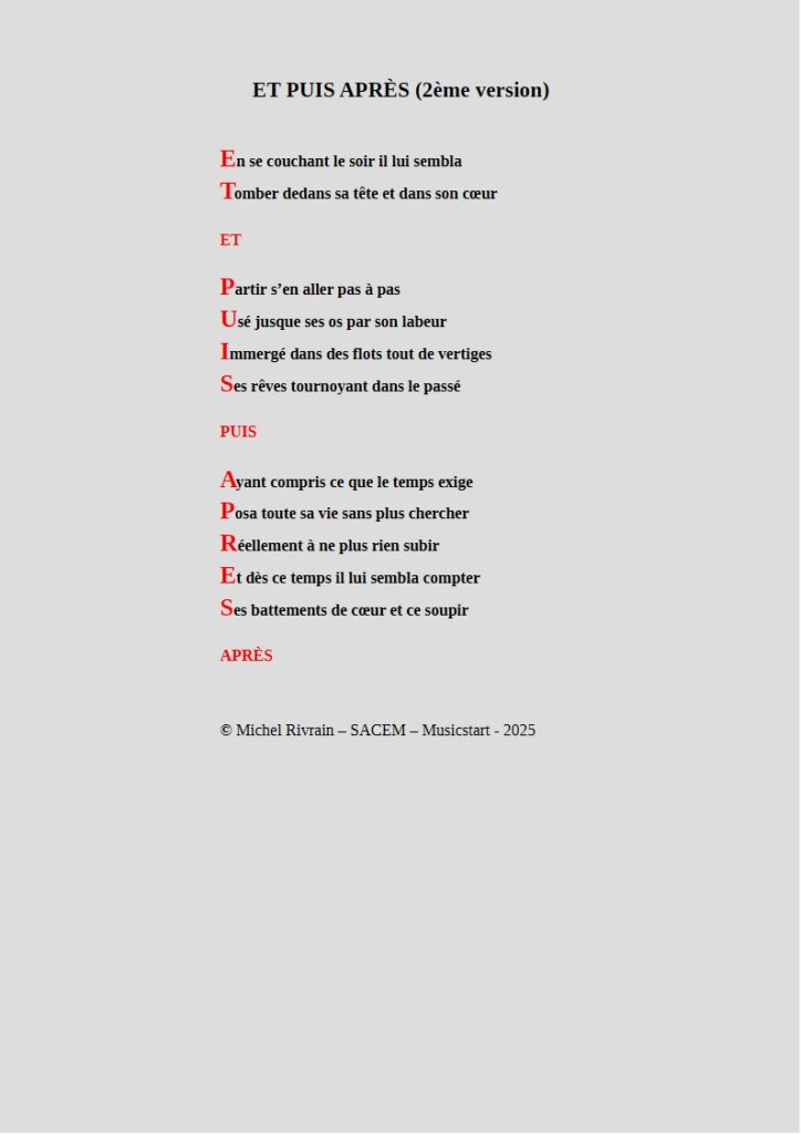 ©Michel Rivrain – SACEM – Musicstart – 2025