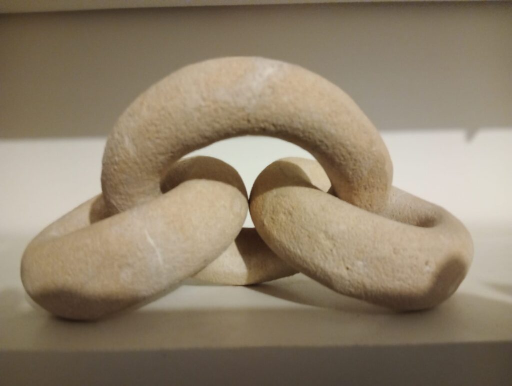 Chaîne de pierre à trois maillons – taille directe sur pierre de Saint Maximin – longueur : 20 cm
