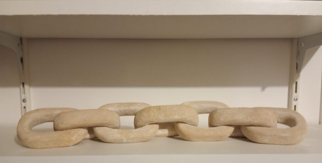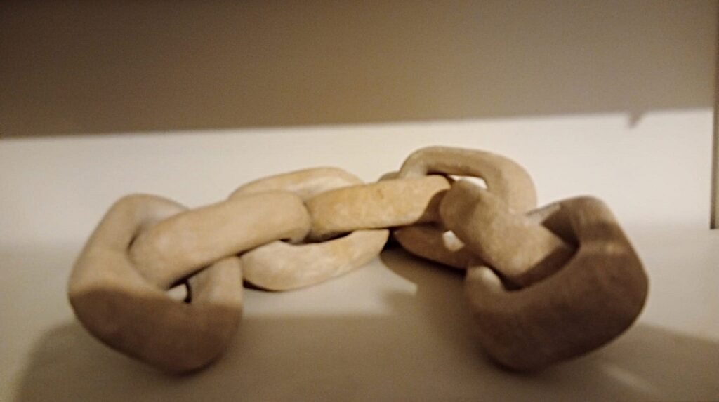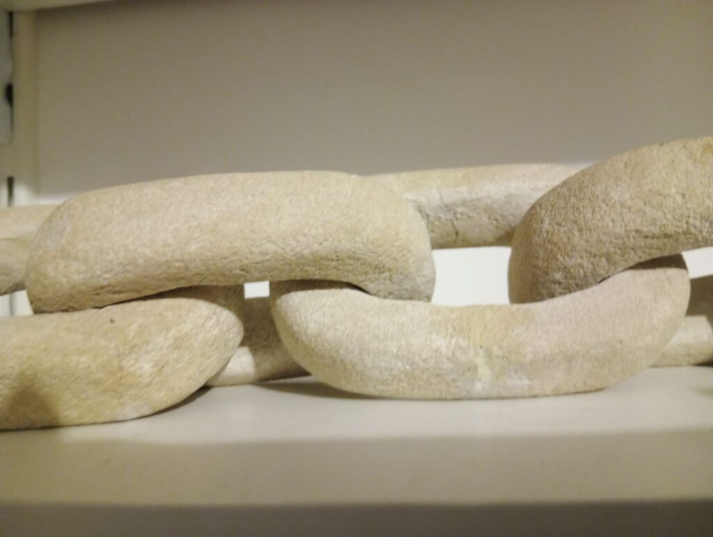 Chaîne de pierre à sept maillons – taille directe sur pierre de Saint Maximin – longueur : 47 cm