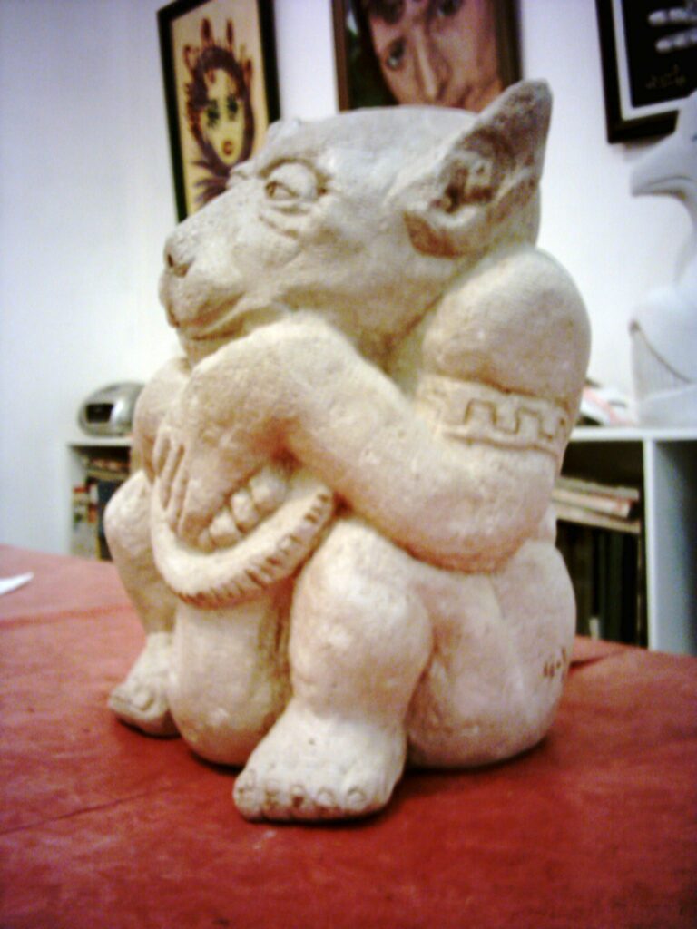 Noble chat – taille directe sur pierre de Nucourt – h : 43 cm