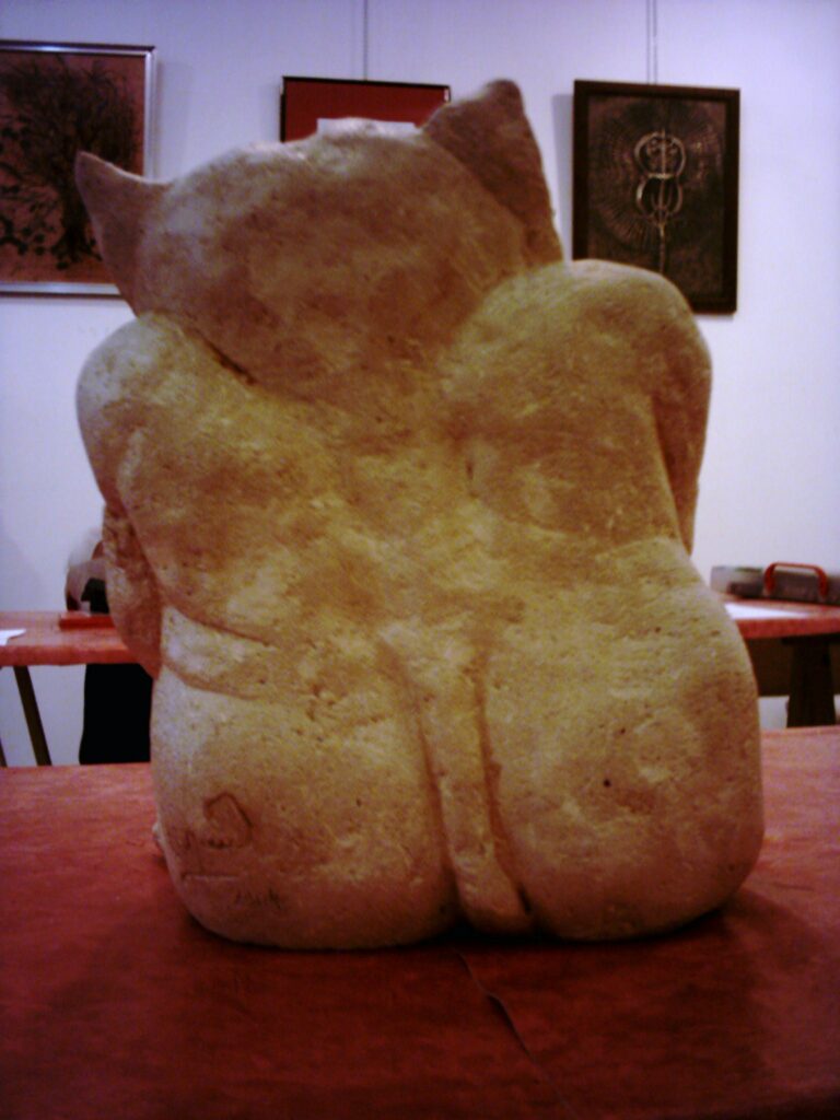 « La galerie où j’exposais à Gisors dans les années 1990 m’a demandé de réaliser quelques objets décoratifs en plus de mes sculptures et tableaux. En voici quelques exemples, tous en taille directe sur pierre de Saint Maximin. »